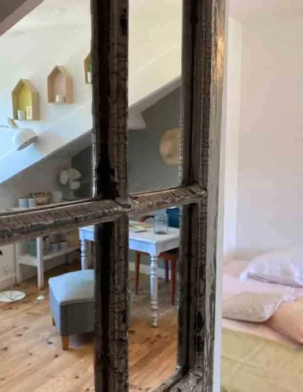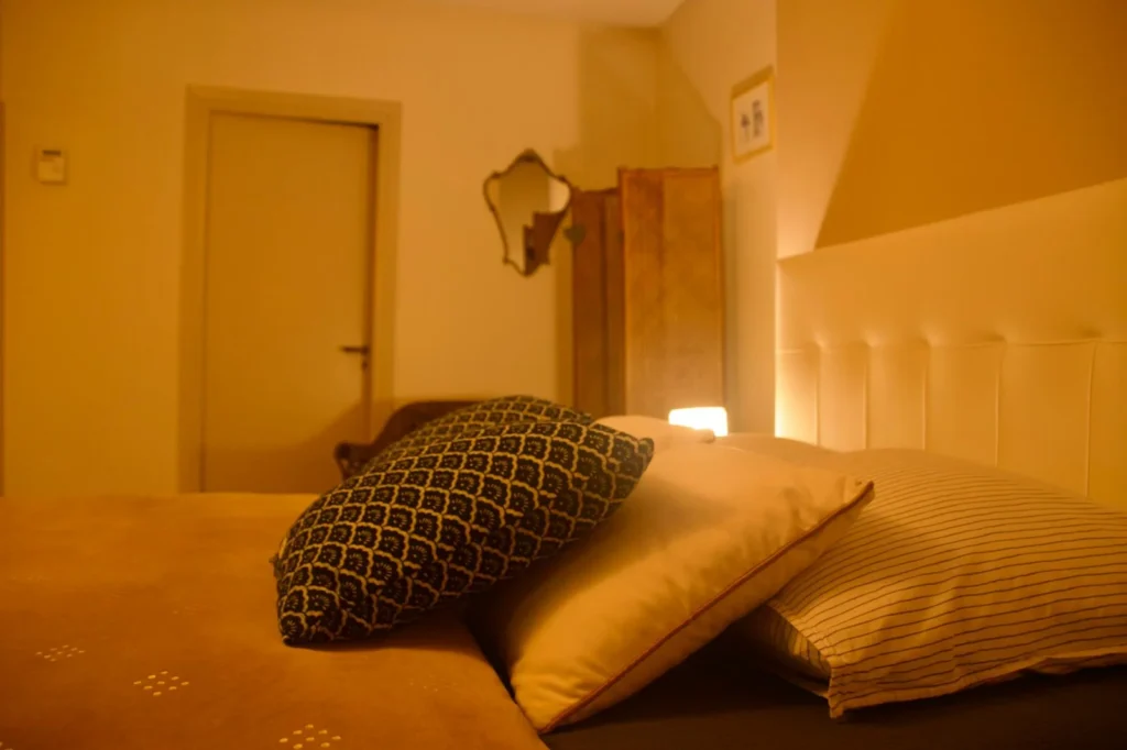 Située à l’étage, calme avec vue sur la ruelle. Lit de 140×190 cm, salle de bain partagée avec douche à l’italienne. Ambiance rétro et douceur naturelle pour une parenthèse reposante.
