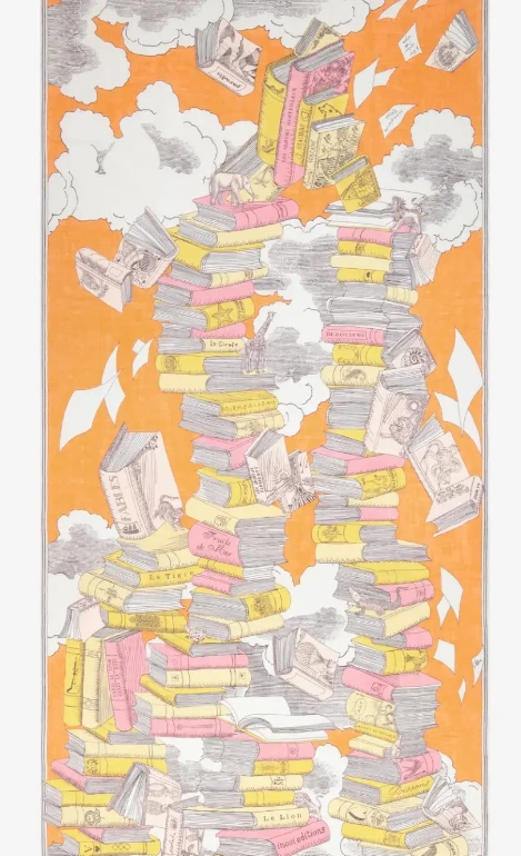 Cette ligne d’écharpes imprimées à la main se décline en plusieurs tailles suivant les designs. La matière aérienne permet une grande finesse des couleurs.